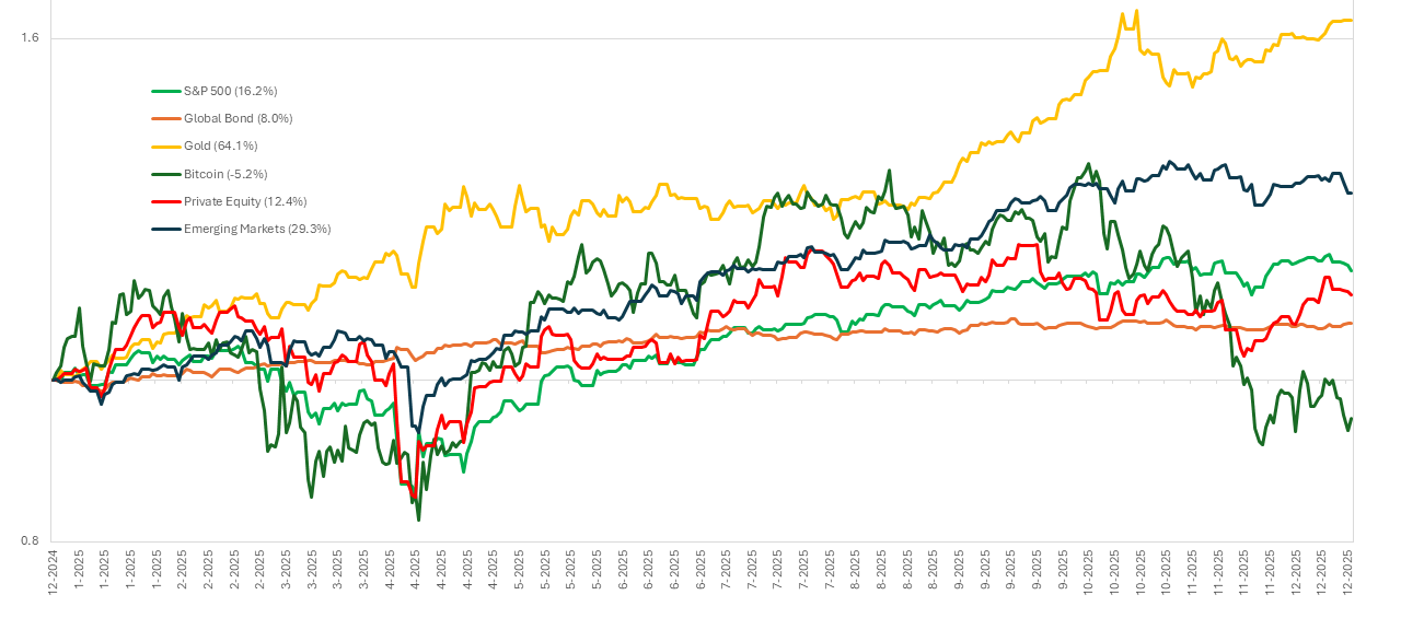 The year 2025 was defined by structural shifts rather than short-term cycles. Geopolitical realignment, persistent inflationary undercurrents, rapid advances in artificial intelligence, and continued monetary accommodation across major economies shaped asset prices globally. While markets delivered uneven returns, the broader picture was one of resilience (particularly in the United States) alongside rising valuation risks and growing dispersion among asset classes.